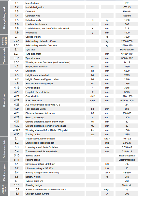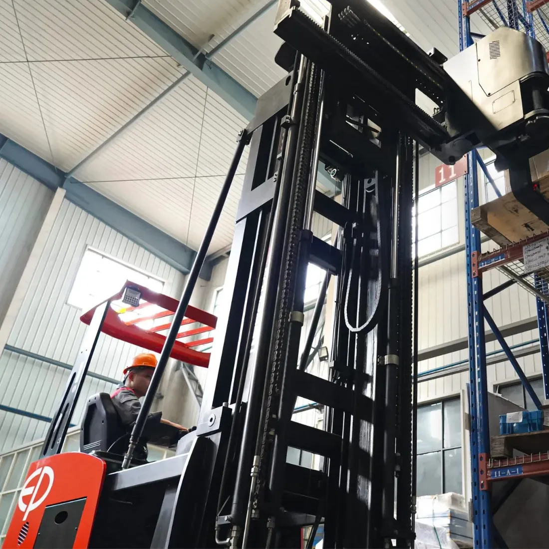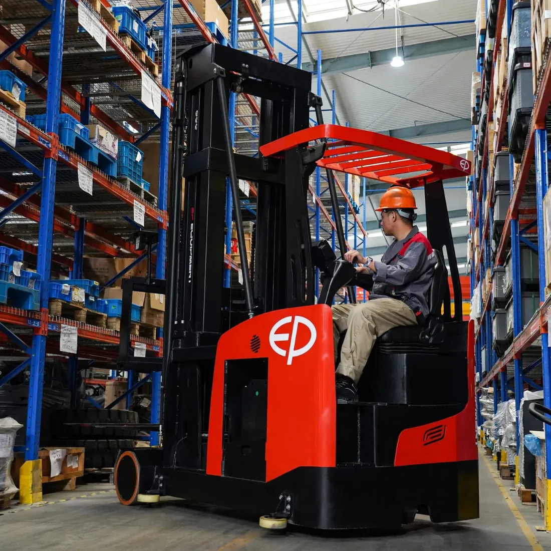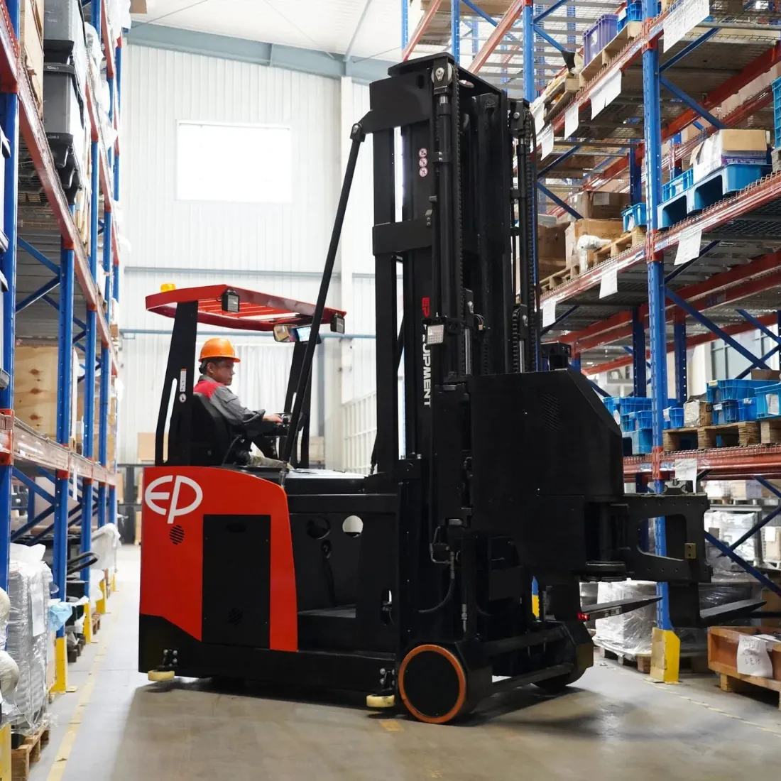La CTL15 de EP Equipment es una carretilla para pasillos muy estrechos (VNA) con operador sentado y operario en posición baja, diseñada para maximizar la eficiencia de almacenamiento y el control del operador. Con una capacidad de 1500 kg, una altura de elevación de 13 m y un pasillo de trabajo compacto de 1740 mm, optimiza cada metro cuadrado de su almacén. Su batería de iones de litio de 48 V/560 Ah garantiza un largo tiempo de funcionamiento y cero mantenimiento, mientras que su diseño ergonómico y sus avanzados sistemas de manipulación ofrecen un rendimiento inigualable en entornos de alta densidad.