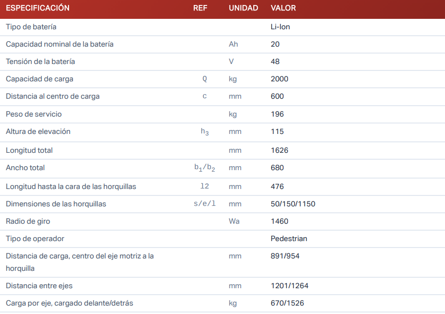 El EPT20-ET2L tiene una capacidad de 2 toneladas y un chasis robusto y compacto, ofrece un rendimiento fiable en almacenes, comercios minoristas y centros logísticos. Su batería de iones de litio de 48 V/20 Ah con cargador integrado permite una carga flexible, y también hay versiones opcionales con batería AGM. Equipado con ruedas giratorias y un resorte de rebote mecánico, garantiza un manejo seguro, estable y sencillo.
